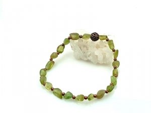 Kamyki perydotu - bransoletka na podwójnej gumce, mosiądz, obwód 17 cm, waga 7.3 grama, rękodzieło