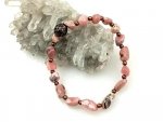 Kamyki rodochrozytu - bransoletka na podwójnej gumce, mosiądz, obwód 15 cm, waga 8.8 grama, rękodzieło