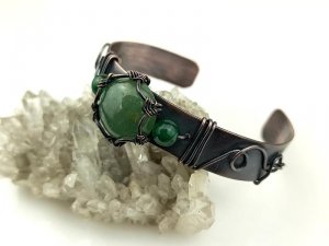Awenturyn - damska bransoletka miedziana, obwód 18 cm - regulowany, waga 20 gram, rękodzieło