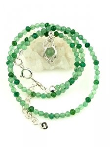 Naszyjnik z awenturynem o długości 43 cm plus 4 cm, waga naszyjnika 9 gram, wisiorek 2.2x1 cm, srebro, rękodzieło