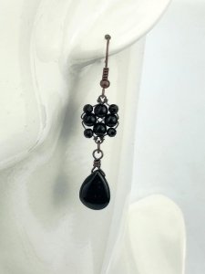 Kolczyki miedziane 4.4x1.6 cm z czarnym turmalinem, waga kolczyków 4.8 grama, rękodzieło