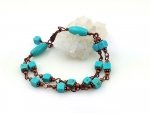 Bransoletka z drutu miedzianego z howlitem, obwód 15.5 – 18 cm, waga 12 gram, znak Bliźniąt, Panny, Strzelca i Raka